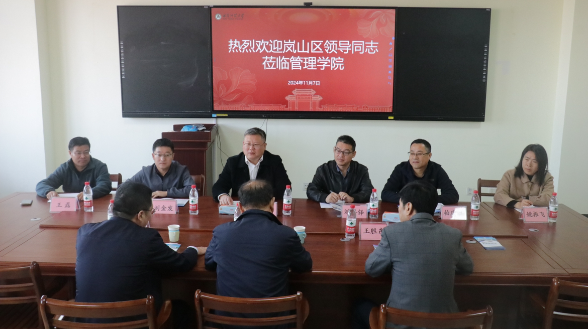 曲阜师大管理学院讯   为强化校企合作,促进产学研深度融合,提升学院人才培养质量和毕业生就业,11月7日,岚山区委组织部副部长、区人力资源和社会保障局局长张磊,岚山区人社局党组成员、区公共就业和人才服务中心主任申发升,岚山区科技孵化器电商创业园总经理王胜东一行到管理学院进行交流座谈,管理学院相关负责人出席活动。