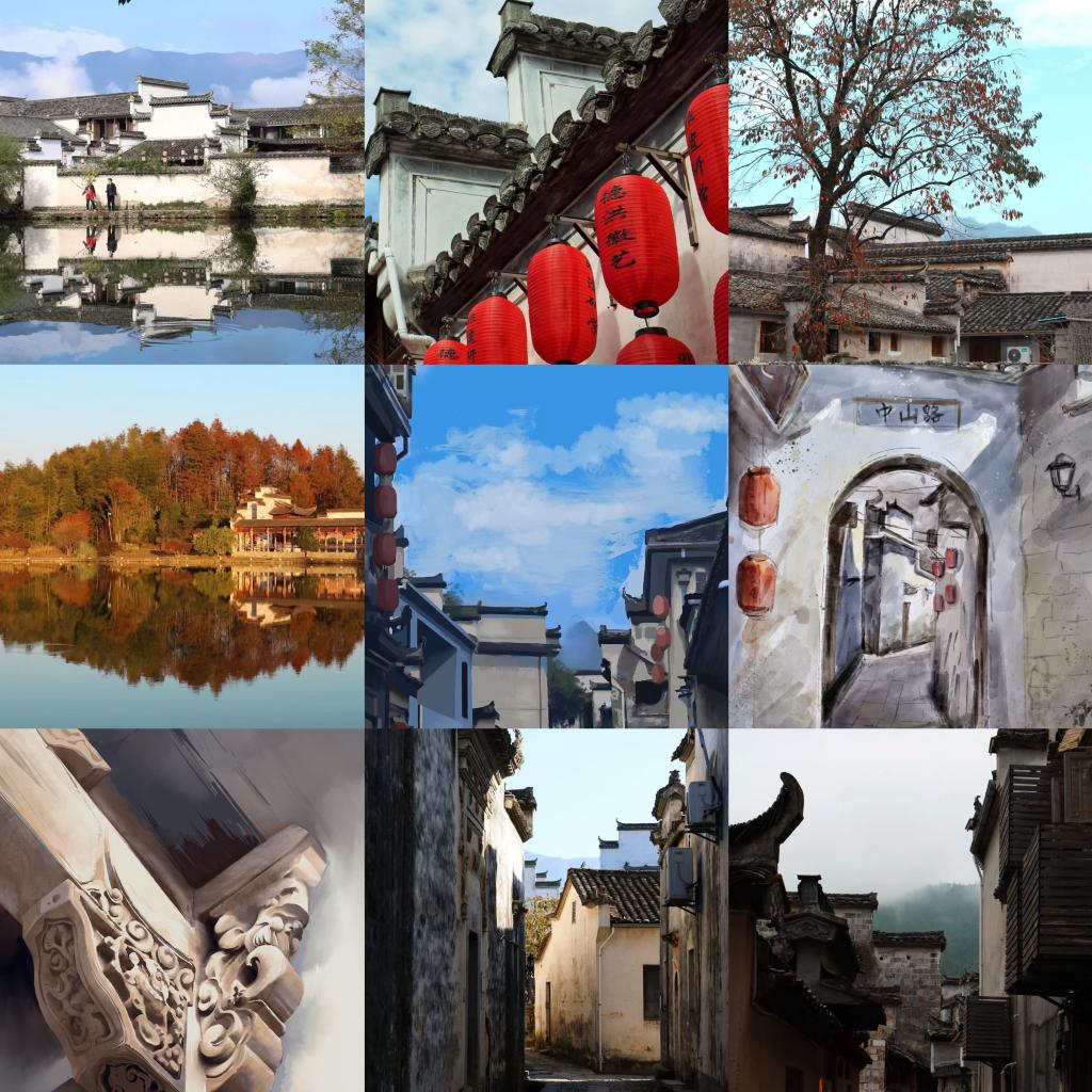 师生一行先后到达黟县宏村、卢村、屏山、赛金花以及塔川森林公园等地,深入领略了徽州地区的传统风格建筑和古村落的历史遗迹。在老师的指导下,学生们以敏锐的镜头感和细致的观察力,用光影捕捉景色的古老与宁静,用画笔展现出传统文化的深厚底蕴,在实践中感受徽州魅力,在交流碰撞中拓宽艺术想象。