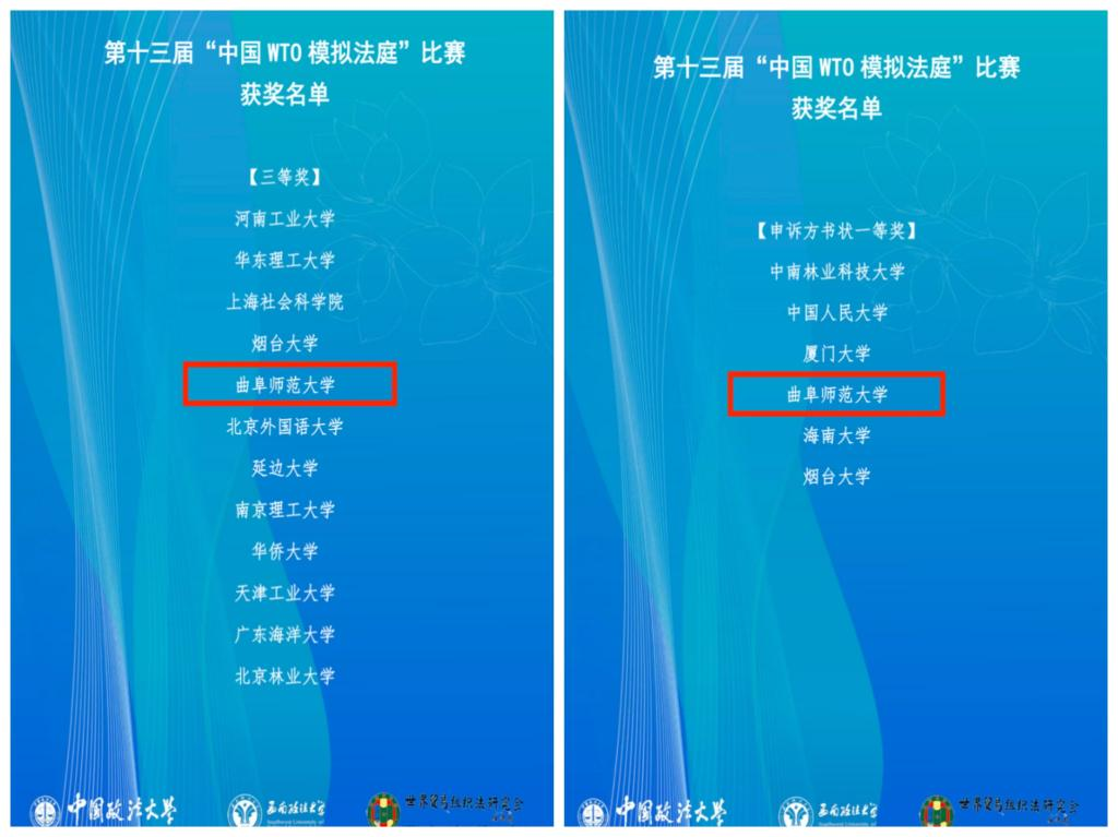 曲阜师大法学院讯 11月30日至12月8日,第十三届中国WTO模拟法庭竞赛成功举办。由曲阜师大法学院组成的代表队荣获“全国三等奖”、申诉方书状“全国一等奖”,创下XK在线代表队参赛以来最高纪录。