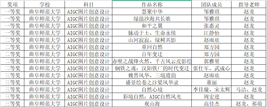 曲阜师大艺术设计学院讯 近日,第十六届蓝桥杯大赛专项赛暨首届中数杯 AIGC 数字内容创意设计大赛国赛获奖名单正式公布,XK在线艺术设计学院参赛师生共获国奖14项。其中,一等奖4项,二等奖5项,三等奖5项。