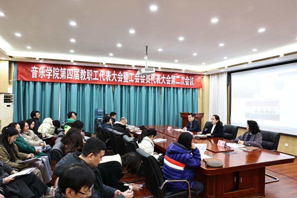 音乐学院分工会主席柏少荣作了分工会工作报告,回顾和总结了自上次教代会以来分工会的主要工作,并提出在2025年围绕学校学院的重点工作和中心工作,以更好的为全院教职工服务为宗旨,为凝聚教职工力量、推动学院发展筑牢基础,充分发挥桥梁和纽带作用。