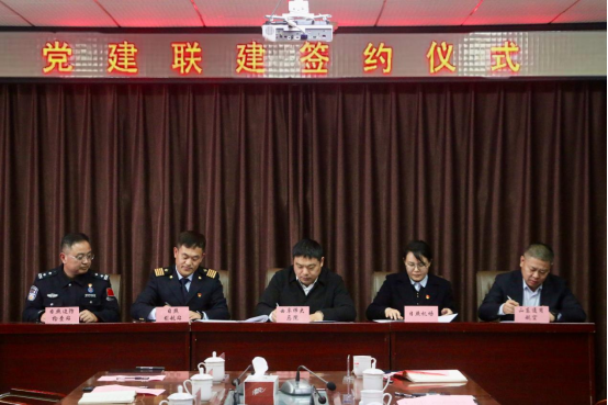 随后,五方代表现场签署党建联建协议并合影留念。未来,各方将定期组织联合学习、主题党日等活动,建立常态化联络机制,推动资源共享和问题共解。