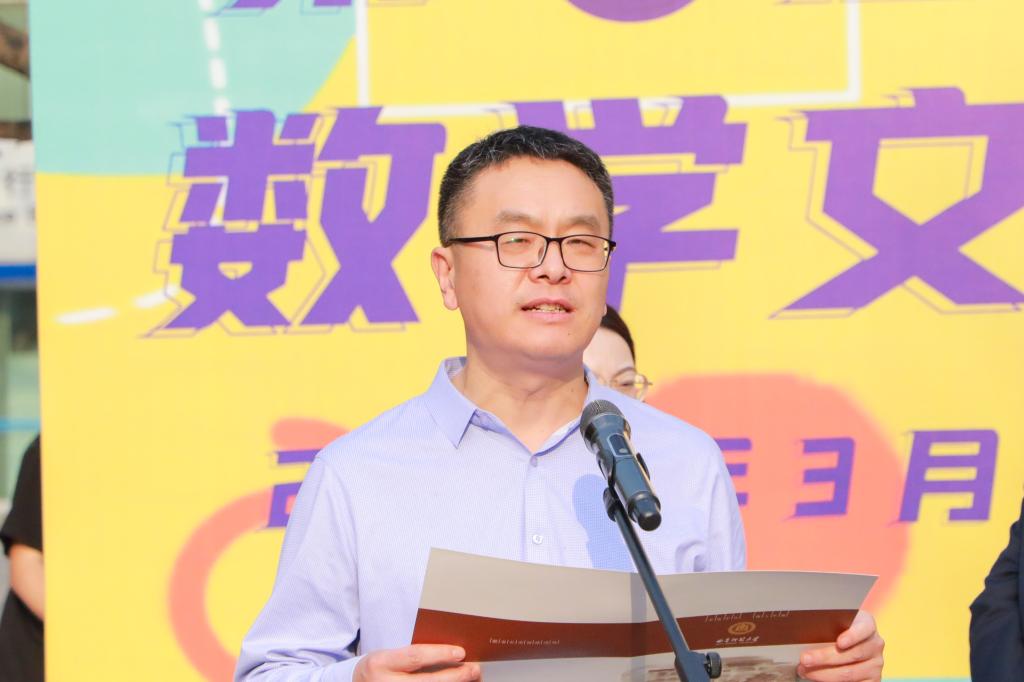 王培合教授在仪式上致辞,他指出,数学文化节是学院依据数学特色打造的校园文化品牌,为同学们提供了展示数学才华、挥洒激扬青春的舞台。他勉励师生们要不断探索数学作为跨学科钥匙的核心价值,探索未来数学应用场景的无限可能,长燃对数学的热爱之情,积极挖掘数学文化的魅力,把对数学的热爱投入到现代化强国建设的伟大事业之中。
