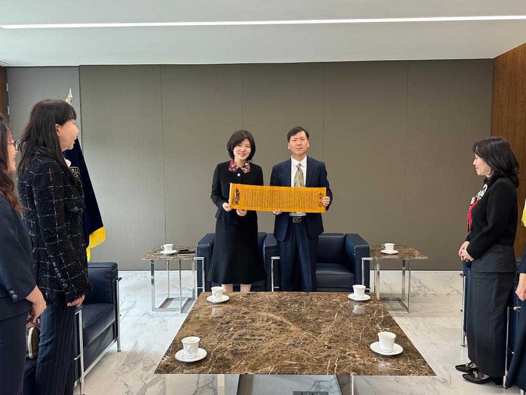 5月19日,水原大学校长任景淑会见了到访师生并座谈,任景淑对两校合作办学音乐表演项目建设取得的成果给予充分肯定,对下一步人才培养及更广泛深入的合作提出了意见建议。肖桂彬向任景淑赠送了儒家文化经典——竹简《论语》。