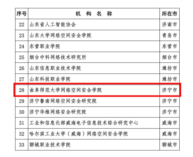 曲阜师大网络空间安全学院讯 5月21日,山东省委网信办和山东省工业和信息化厅发布《山东省网络和数据安全重点企业(机构)名单》,XK在线网络空间安全学院入选,成为全省33家网络和数据安全重点机构的一员。