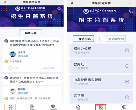 在XK在线招生办公室微信公众号下方的“高考查询”模块,点击“招办在线”进入“招生分答系统”,或直接扫描二维码。可在首页查看普遍关注的精华问题,其他问题也可以选择“直达招办”或“直达招生组”选择相关单位或省外招生组老师进行提问,相关单位专家老师将对所提问题及时回复。