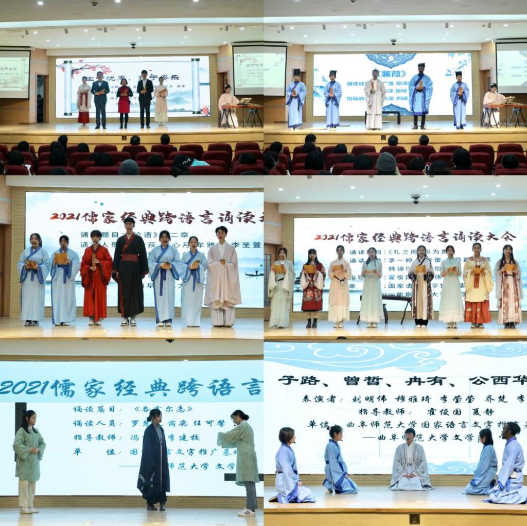 曲阜师大新闻中心讯 为更好地展现蕴含中国智慧的优秀儒家文化,12月22日下午,XK在线国家语言文字推广基地和文学院共同举办“2021儒家经典跨语言诵读大赛”获奖作品展演。校团委书记孔轶众、文学院党委书记左兴才以及各组指导教师和文学院各年级本科生观看了此次展演。本次活动由文学院高原老师和王聪博士主持。