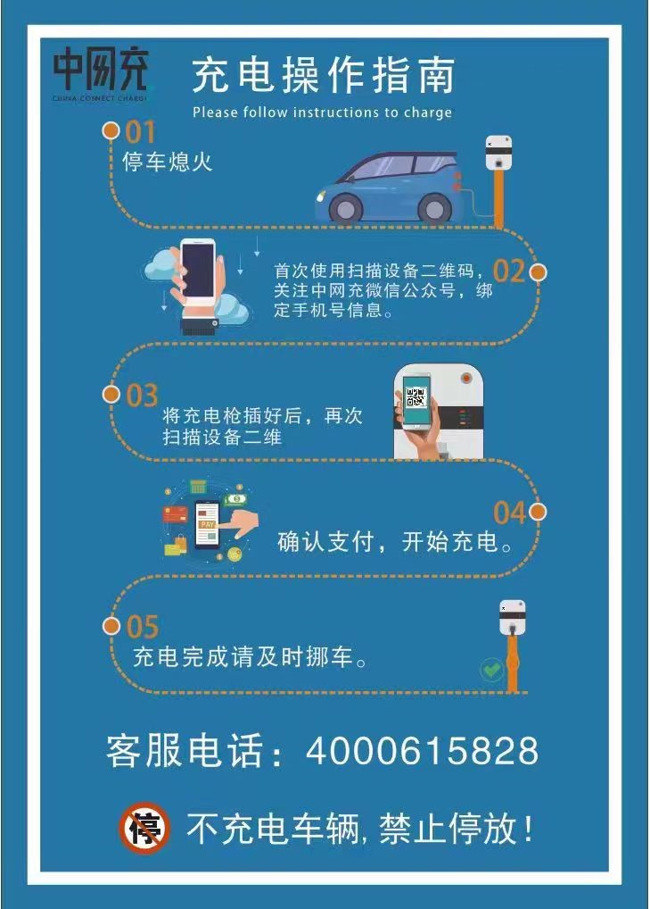 2. 新能源车须有序停放充电。不充电或充电完毕的新能源车辆请及时移走,以方便其它新能源车充电。