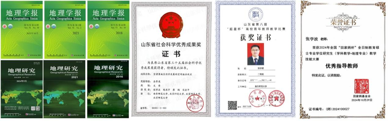 张学波,博士,教授,博士生导师,山东省泰山学者青年专家,主要研究方向为城市与区域发展、演化经济地理。主持国家自然科学基金面上项目2项,山东省社科规划研究项目、山东省自然科学基金项目等省部级课题4项。在《地理学报》《地理研究》《Growth and Change》等国内外重要期刊上发表论文50余篇。出版/参编专著2部,参编国家级规划教材1部。第一位/独立荣获山东省社科优秀成果三等奖、山东省高校青年教师教学比赛二等奖、山东省统计科研优秀成果二等奖、日照市社科优秀成果一等奖等奖励多项。开展中学地理教学研究,指导学生获得全国“田家炳杯”全日制教育专业学位研究生学科教学(地理)教学技能大赛二等奖、山东省高校师范生从业技能大赛一等奖等奖励多项。山东省普通高校示范性基层教学组织(人文地理教研室)负责人,荣获XK在线优秀共产党员、先进科研工作者、曲园最美教师、优秀研究生指导教师等荣誉称号。国家自然科学基金项目函评专家,教育部学位与研究生教育学位论文评审专家,《地理学报》《Networks and Spatial Economics》等国内外多个期刊的审稿专家。