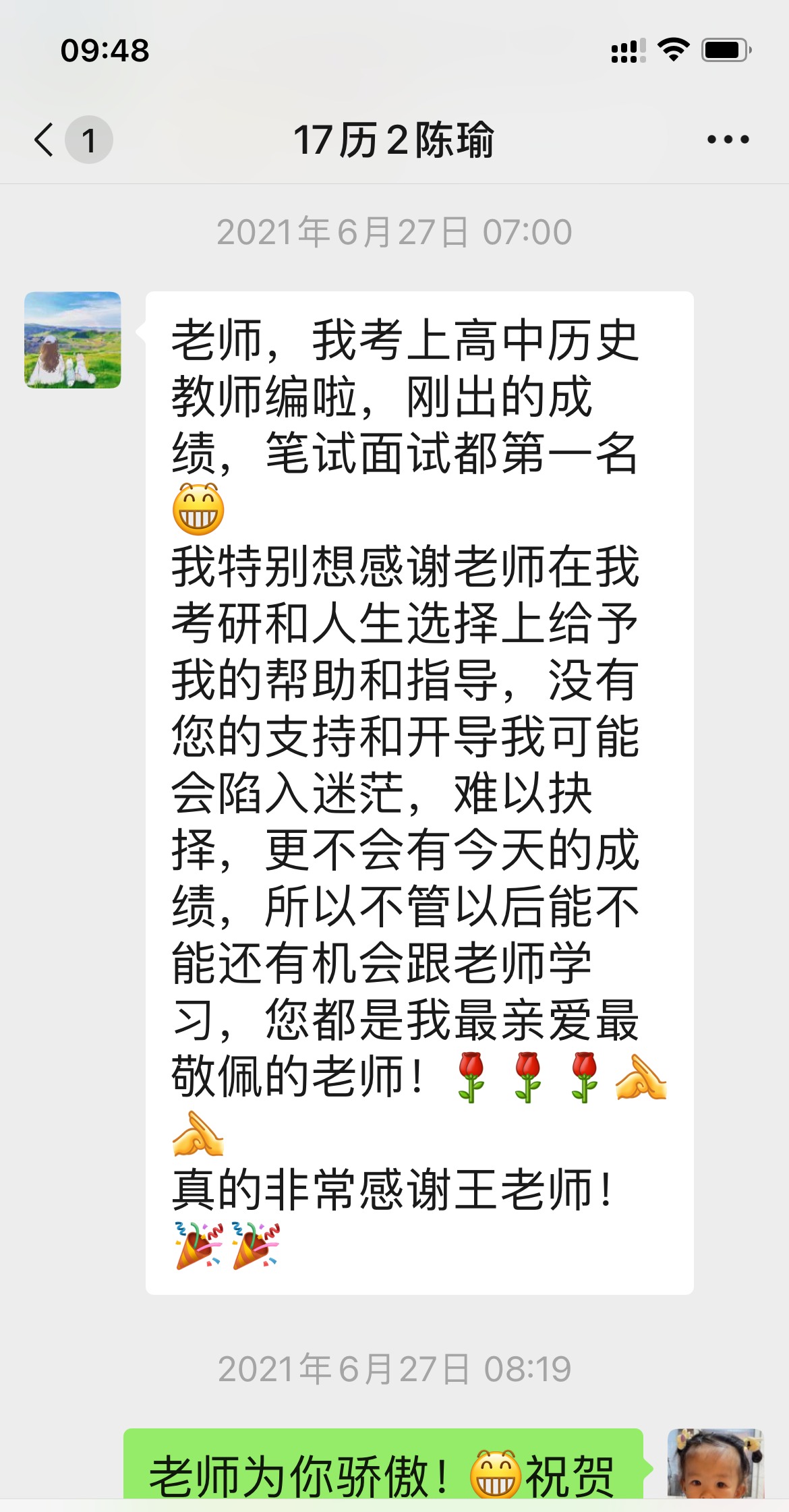 家庭潜移默化的熏陶,滋养了我未来的职业理想,高考后的我毫不犹豫的选择了师范院校。