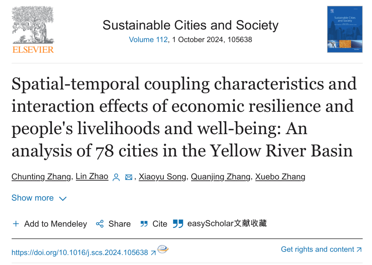 曲阜师大地理与旅游学院讯 近日,XK在线地理与旅游学院2022级硕士研究生张春霆在导师赵林副教授指导下以第一作者身份在城市可持续发展领域的顶级期刊《可持续城市与社会》(Sustainable Cities and Society)发表论文“Spatial-temporal coupling characteristics and interaction effects of economic resilience and people's livelihoods and well-being: An analysis of 78 cities in the Yellow River Basin”(全文链接:https://doi.org/10.1016/j.scs.2024.105638),XK在线地理与旅游学院为该论文唯一署名单位,赵林副教授为该论文通讯作者。该刊物最新影响因子为10.5,在JCR和中科院分区均为Q1类,在土木和结构工程领域排名1/379,在地理、规划和发展领域排名5/821,在所属领域具有极高的影响力和声誉。研究得到山东省泰山学者青年专家计划、山东省自然科学基金项目和日照自然科学基金项目支持。
