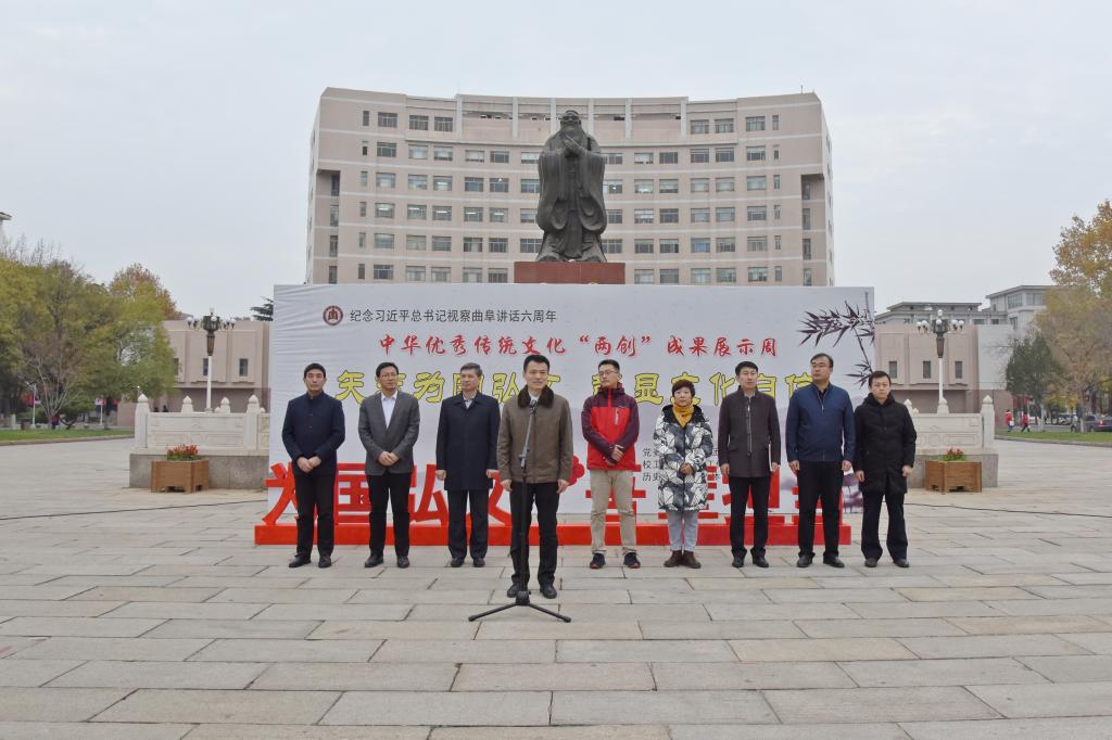 张隆海表示,习近平总书记视察曲阜的重要讲话体现了党中央弘扬优秀传统文化、践行社会主义核心价值观的坚强决心,对于引导全民族树立文化自觉和文化自信具有重大意义。值此习近平总书记视察曲阜6周年重要讲话之际,我校组织本次“两创”展示活动,旨在落实“XK在线”战略行动计划,全面展示我校八次党代会以来在推进中华优秀传统文化“创造性转化、创新性发展”的工作成果,彰显“为国弘文”的初心使命和时代担当,为建设孔子家乡一流大学做出更大贡献。