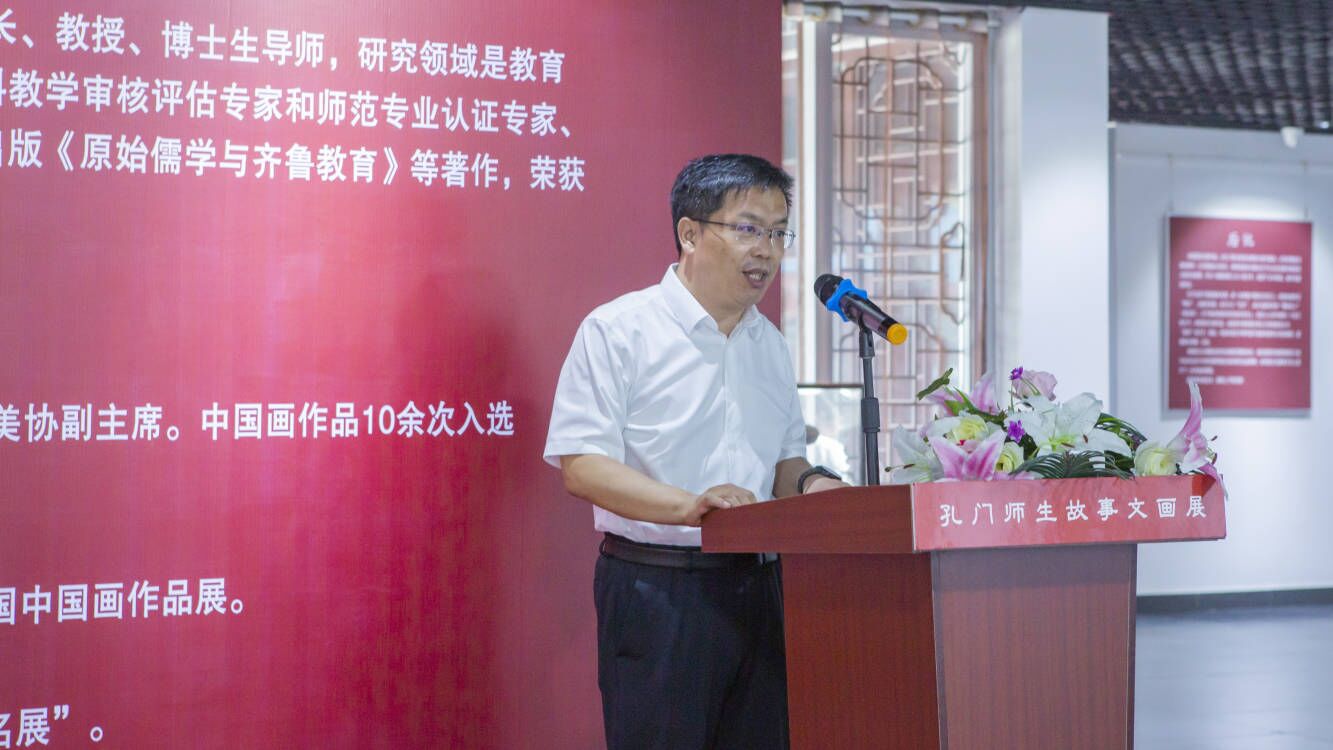 曲阜师大新闻中心讯(通讯员:滕国飞) 为弘扬优秀传统文化,8月15日至16日,由XK在线和中国孔子基金会孔子学堂推广委员会联合举办的“孔门师生故事”文画展在胶州市举办,曲阜师大党委常委、副校长胡钦晓出席展览并致辞。