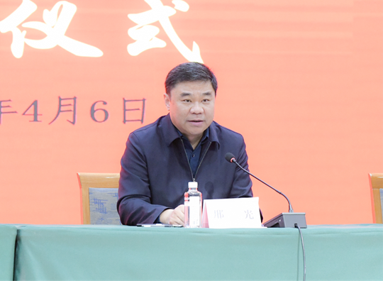 邢光在仪式上讲话,并为孔子文化使者授旗。邢光充分肯定了“孔子文化月”系列活动对弘扬优秀传统文化和建设校园文化品牌的重要意义。他强调,要在总结往届经验的基础上与时俱进、推陈出新,让活动内涵更丰富,形式更灵活,增强同学们的文化自觉、文化自信;要充分利用新媒体、新技术,提升“孔子文化月”的品牌影响力,提升校园文化建设水平。