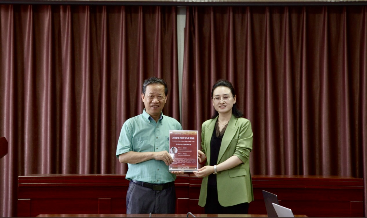 讲座由学院孙功进教授主持。学院党委书记卢瑞霞代表学院向谢文郁教授赠送海报纪念摆台,谢文郁教授现场为讲座海报签名,该签名海报将作为“羲和讲堂” 名家记忆存档,见证学院学术交流历程。