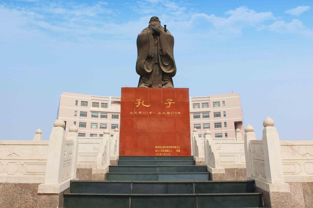 二人对话:以中国传统书法艺术为表现手段,写就两个“人”形符号,二人相对而坐,如切磋辩论,又如促膝谈心,知识传播自二人始,教育自二人始,仁爱之心也自二人始,“二人对话”的结构,直观地体现了以人为本的教育理念,体现了曲阜师大人对学术和教育的本质理解,内涵丰富,中国伟大的教育家孔子2500多年前在曲阜杏坛设教,并有《论语》传世,印证了教育就是人和人的相互影响,学术就是人和人的对话。孔子与弟子们坐而论道,教学相长,开辟了中国教育的先河,其“学而不厌,诲人不倦”的经典语被曲阜师大奉为校训。学校的校徽和校训皆源自于孔子思想,二者有机统一,相得益彰。