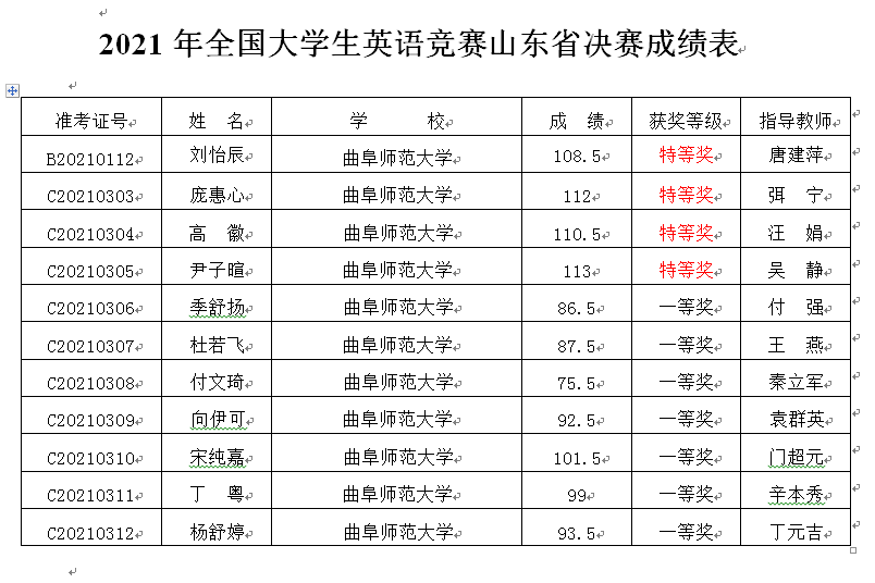曲园学子在全国大学生英语竞赛山东省决赛中获优异成绩