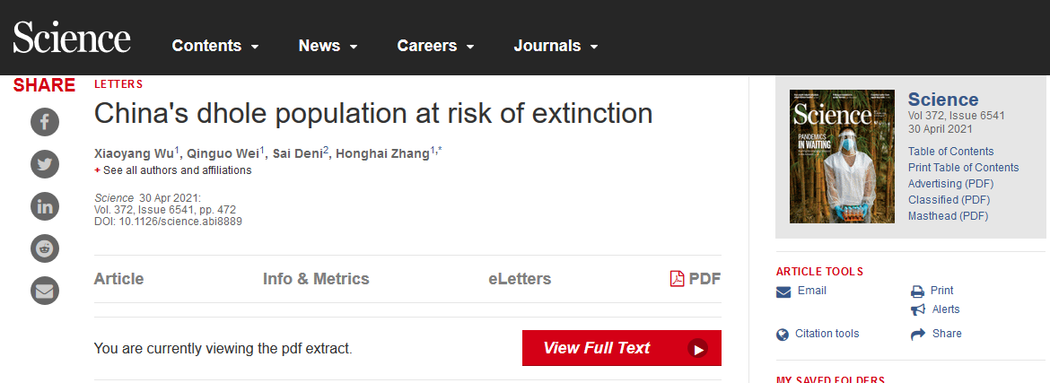 曲阜师大张洪海教授团队在Science发表letter文章呼吁加强野生动物保护