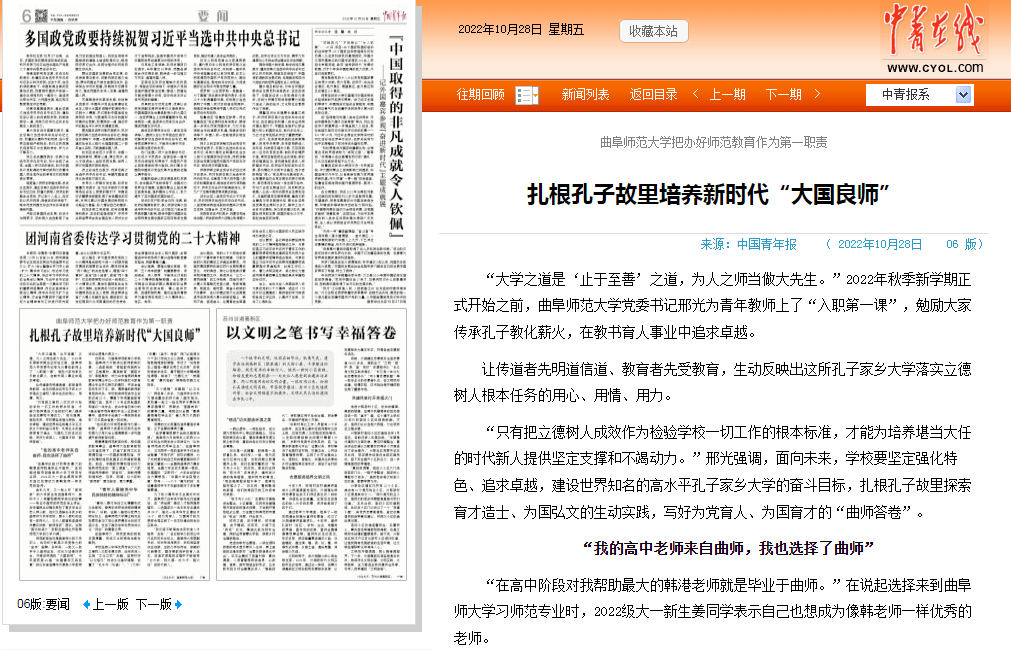 《中国青年报》刊文报道曲阜师大立德树人特色经验
