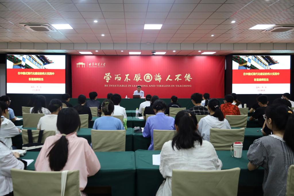 曲阜师大历史文化学院讯 6月17日上午,党委书记邢光以“在中国式现代化建设的伟大实践中彰显曲师担当”为题,为历史文化学院2022级国学班学生讲授了一堂内容丰富、精彩深刻的形势与政策课。邢光从中国式...
