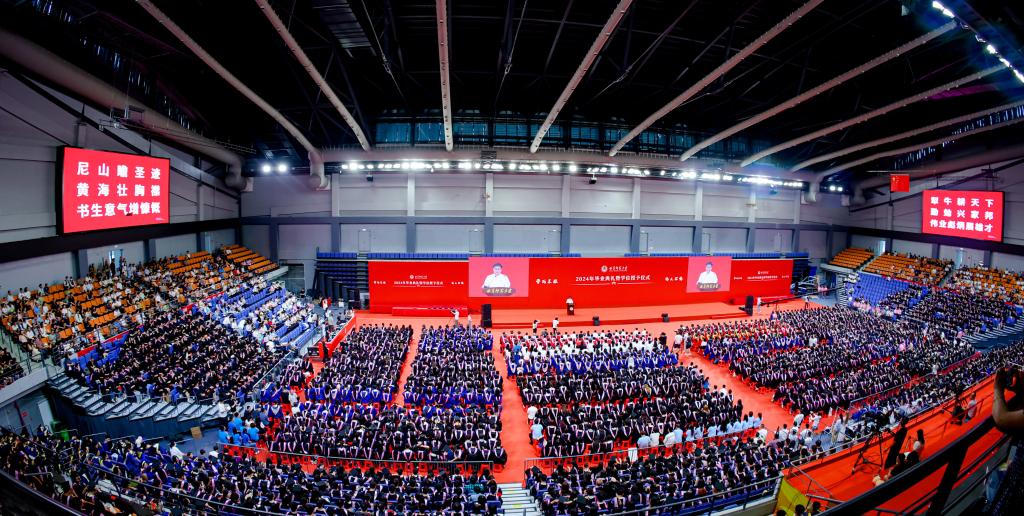 青春骊歌悄然唱响莘莘学子即将携梦远行在2024毕业典礼暨学位授予仪式上上演了一幕幕精彩感动的瞬间 温暖走心 党委书记邢光为轮椅上的毕业生俯身拨穗校长张洪海与典礼上的萌娃合影退役大学生换装礼敬最...