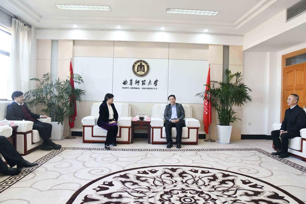 曲阜师大党委宣传部讯 11月4日,烟台大学党委书记卢国强,校长郝曙光一行来访曲阜师大,曲阜师大党委副书记、校长张洪海会见并座谈交流。烟台大学党委副书记白青,党委常委、副校长初磊,学校党委领导...
