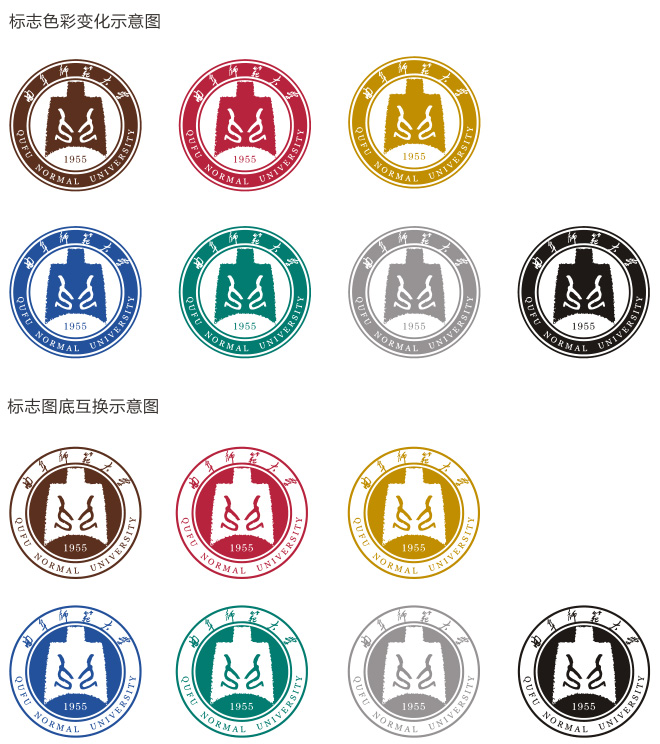 二人对话:以中国传统书法艺术为表现手段,写就两个“人”形符号,二人相对而坐,如切磋辩论,又如促膝谈心,知识传播自二人始,教育自二人始,仁爱之心也自二人始,“二人对话”的结构,直观地体现了以人为本的教育理念,体现了曲阜师大人对学术和教育的本质理解,内涵丰富,中国伟大的教育家孔子2500多年前在曲阜杏坛设教,并有《论语》传世,印证了教育就是人和人的相互影响,学术就是人和人的对话。孔子与弟子们坐而论道,教学相长,开辟了中国教育的先河,其“学而不厌,诲人不倦”的经典语被曲阜师大奉为校训。学校的校徽和校训皆源自于孔子思想,二者有机统一,相得益彰。